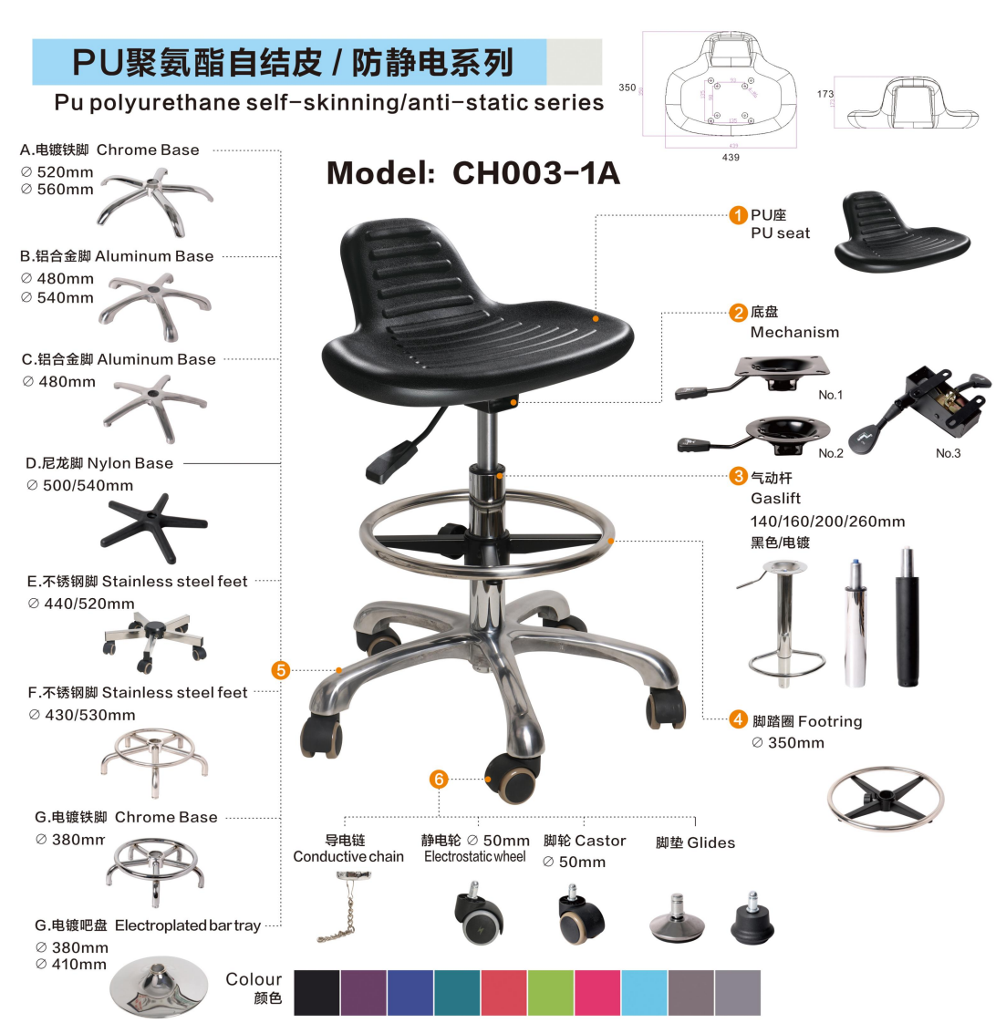Customization Options: Color, caster type, foot ring, armrests